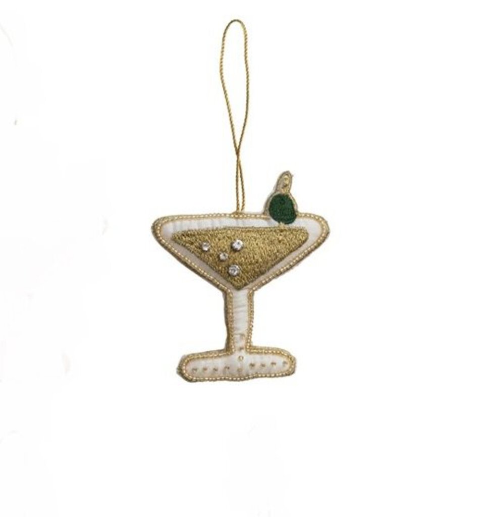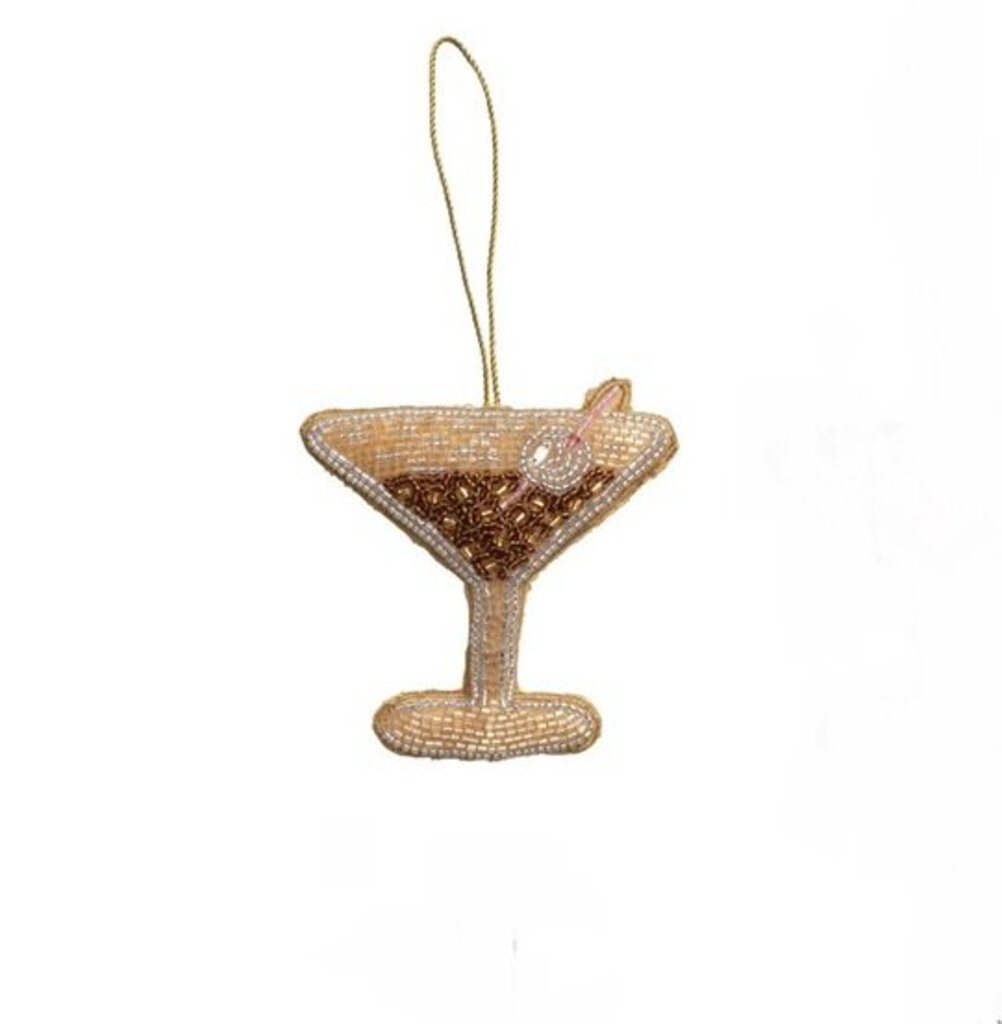 Beaded Fabric Cocktail Ornament, Martini with Olive