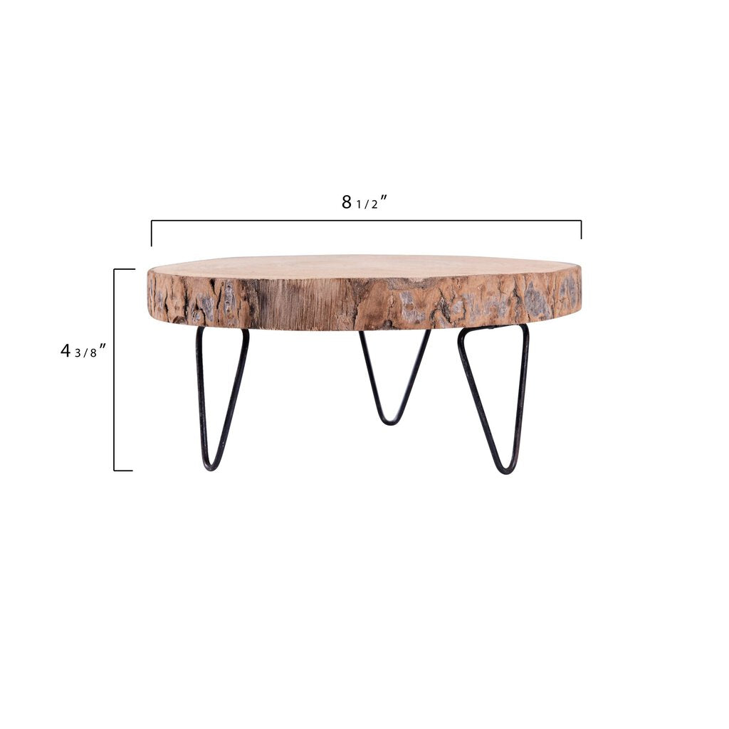 9" Round Paulownia Wood Pedestal w/ Metal Legs, KD (Each One Will Vary)