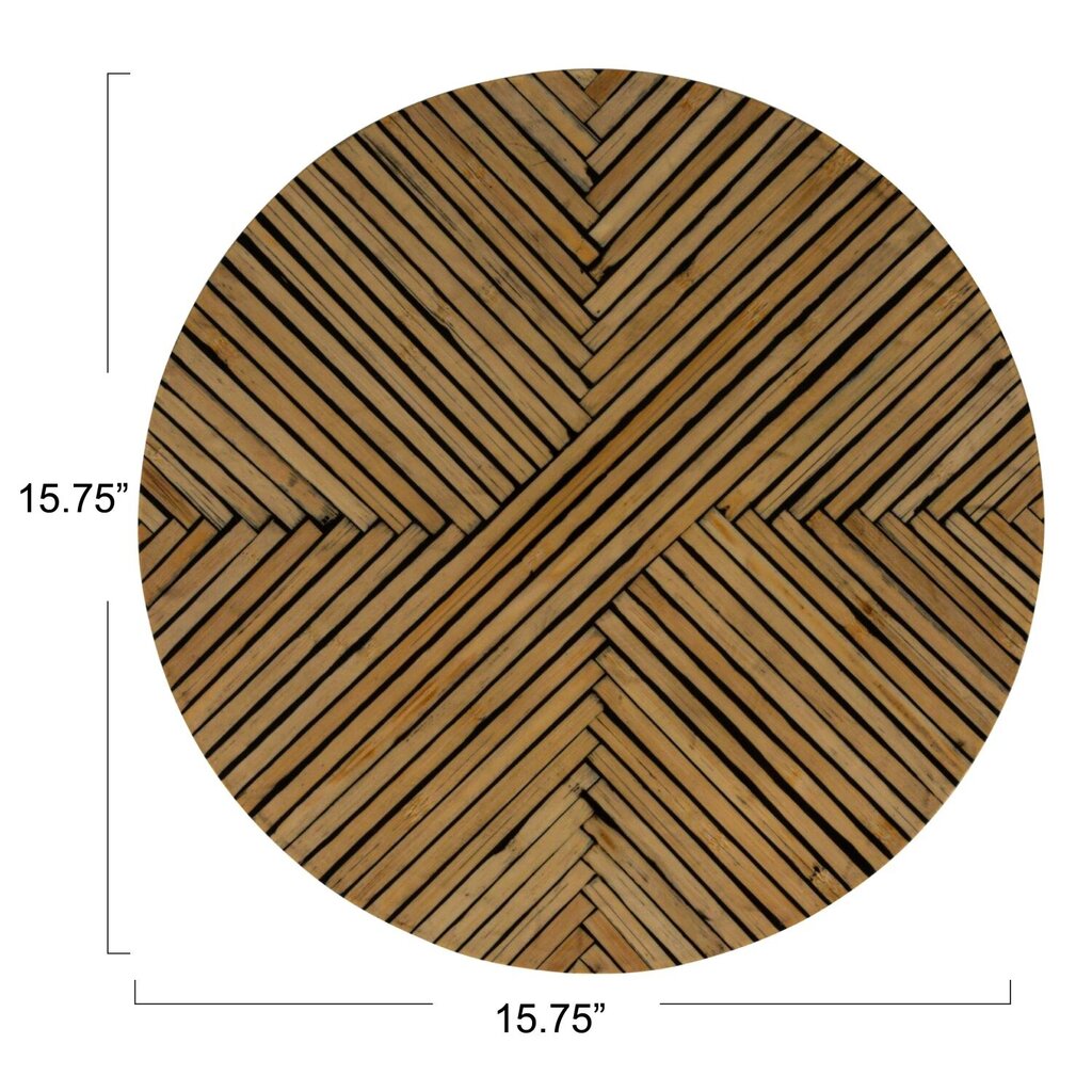 15-3/4" Round x 1-1/2"H MDF & Bamboo Lazy Susan w/ Geometric Stripes, Black & Natural