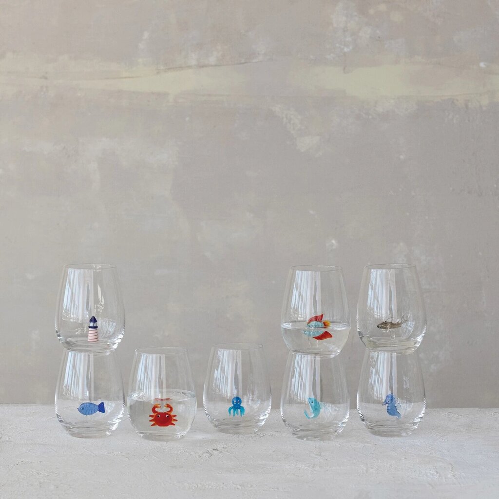 18 oz. Stemless Wine Glass with Hand-Blown 'Seahorse' Inside