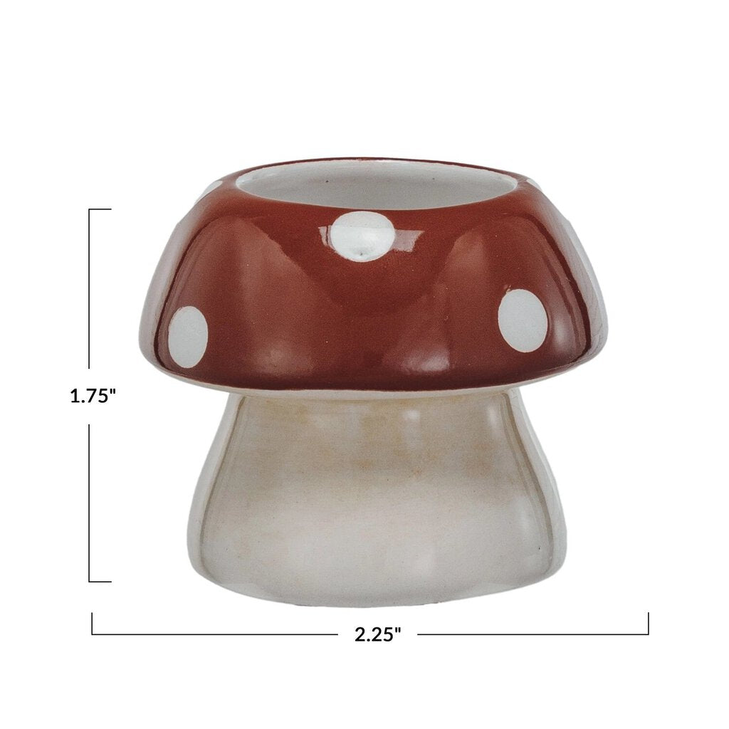2-1/4" Round x 1-3/4"H Hand-Painted Ceramic Mushroom Shaped Toothpick Holder, Red & White