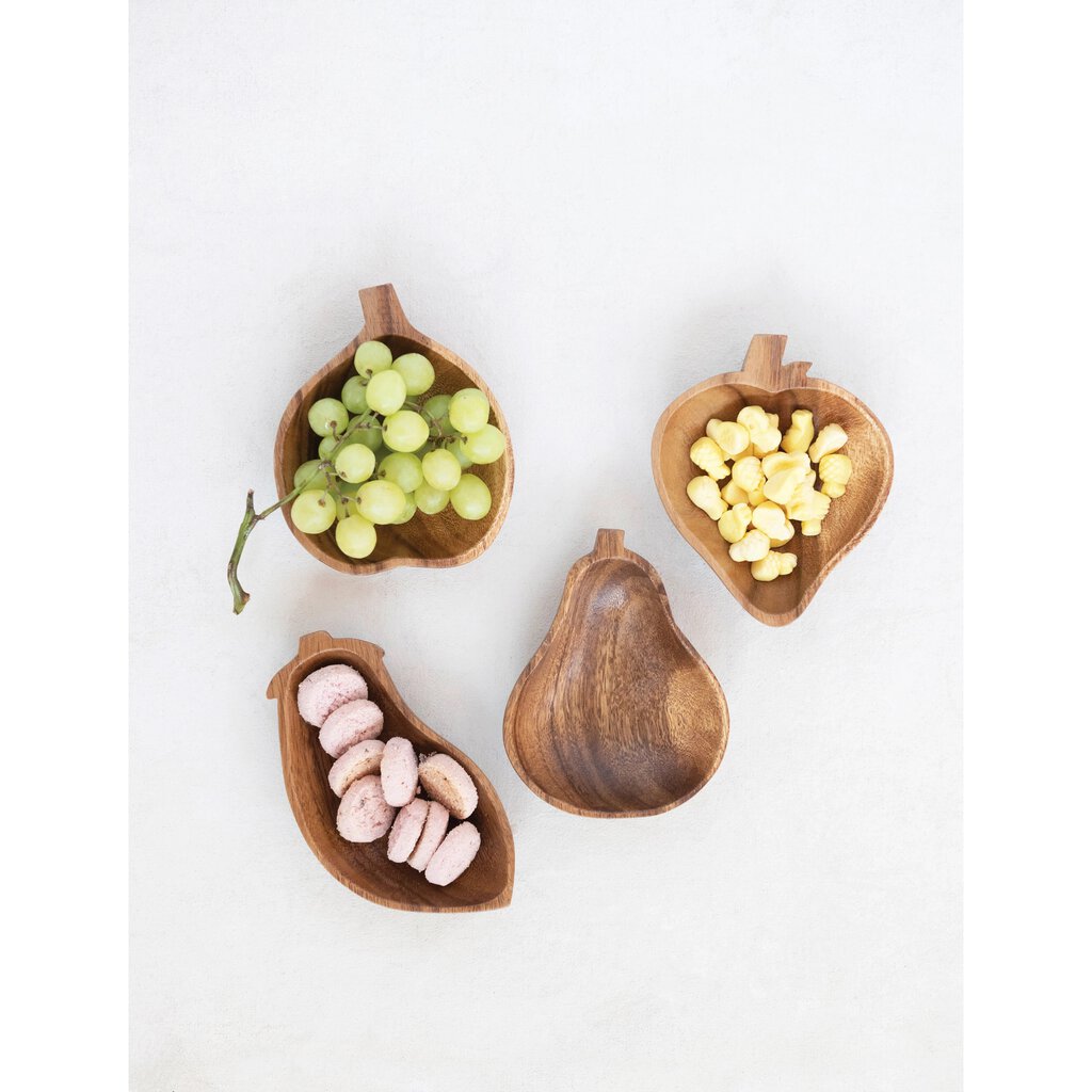 6"L - 7-1/4"L Hand-Carved Acacia Wood Fruit/Vegetable Shaped Bowl, 4 Styles available
