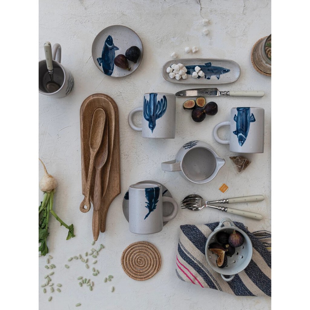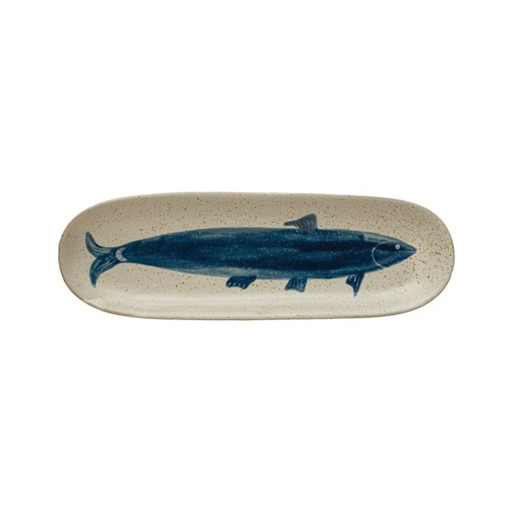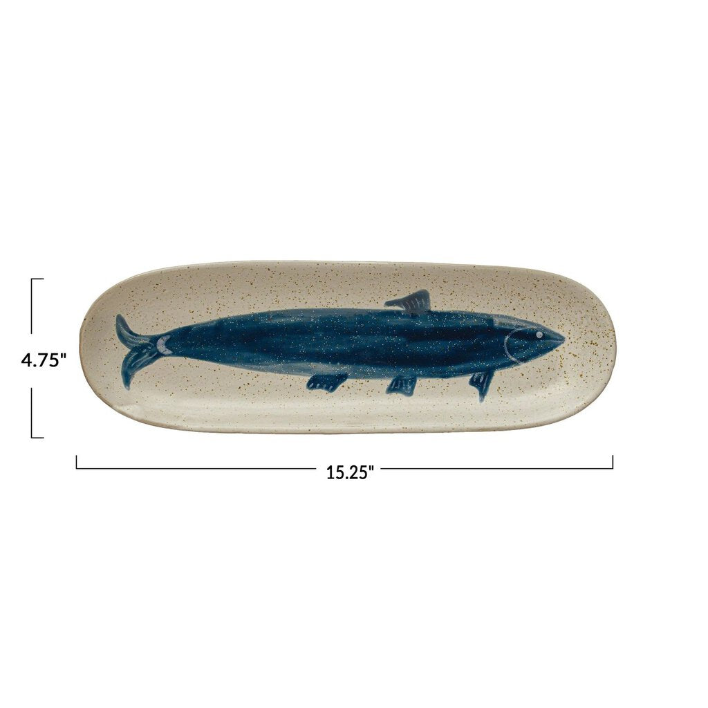 Hand-Painted Stoneware Platter w/ Fish, Reactive Glaze, 15 1/4"