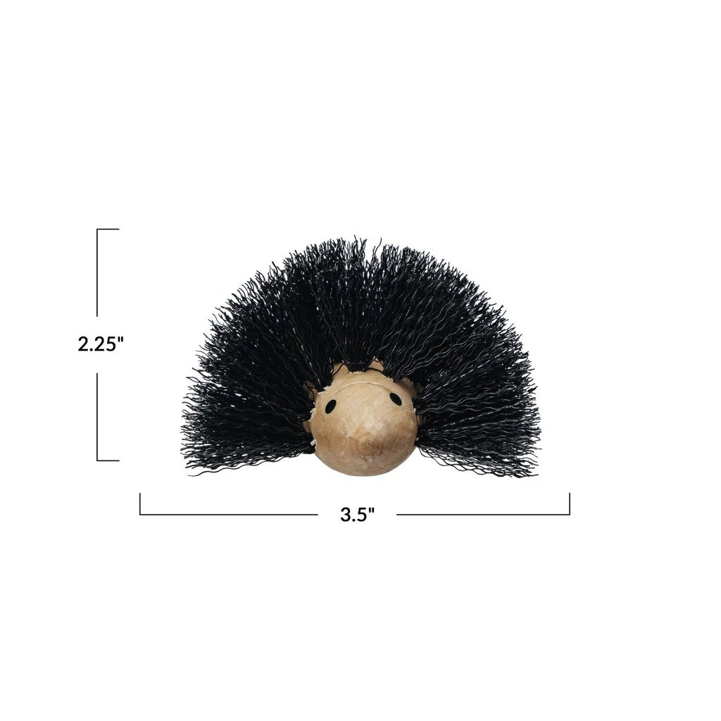 3-1/2"L x 3-1/2"W x 2-1/4"H Wood & Plastic Hedgehog Shaped Brush, Black & Natural