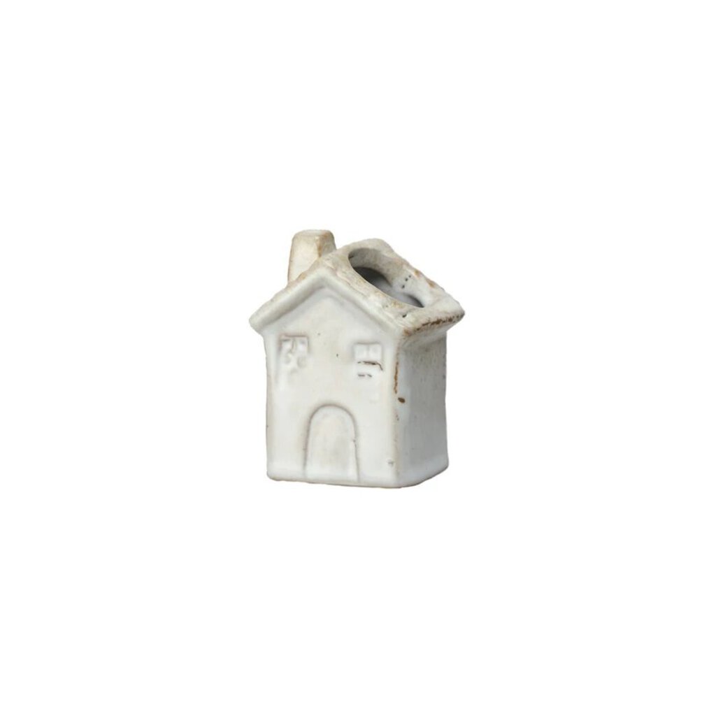 1-1/2"L x 1"W x 3-3/4"H Stoneware House Shaped Toothpick Holder, Reactive Glaze, Antique White (Each One Will Vary)
