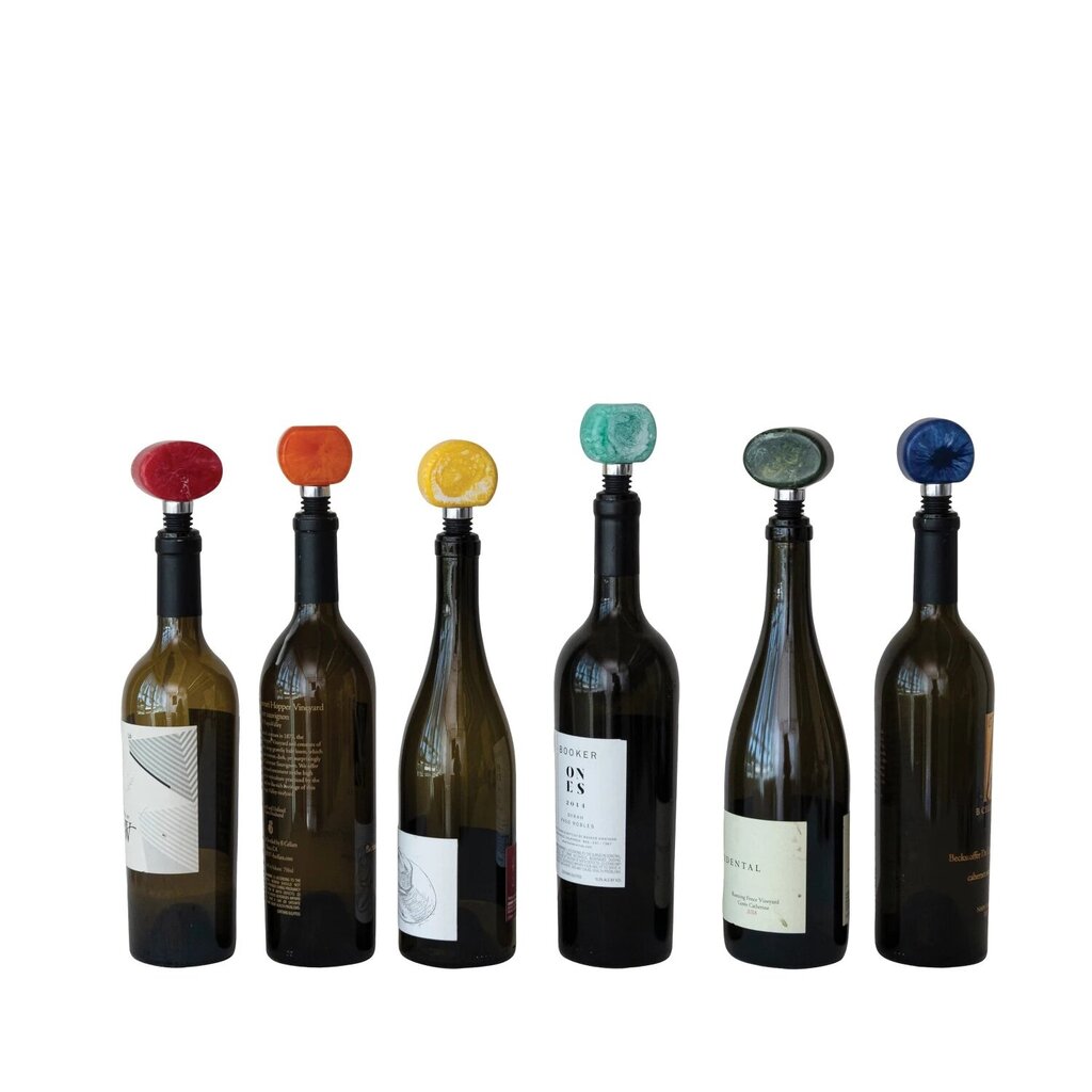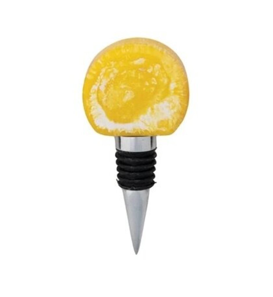 Yellow Aluminum & Marbled Resin Bottle Stopper - New is backordered and will ship as soon as it is back in stock.