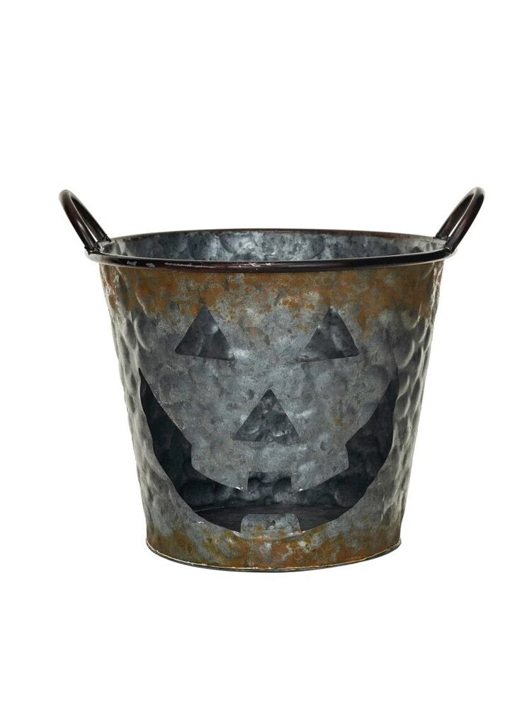 Decorative Galvanized Jack-O-Lantern Bucket, Large