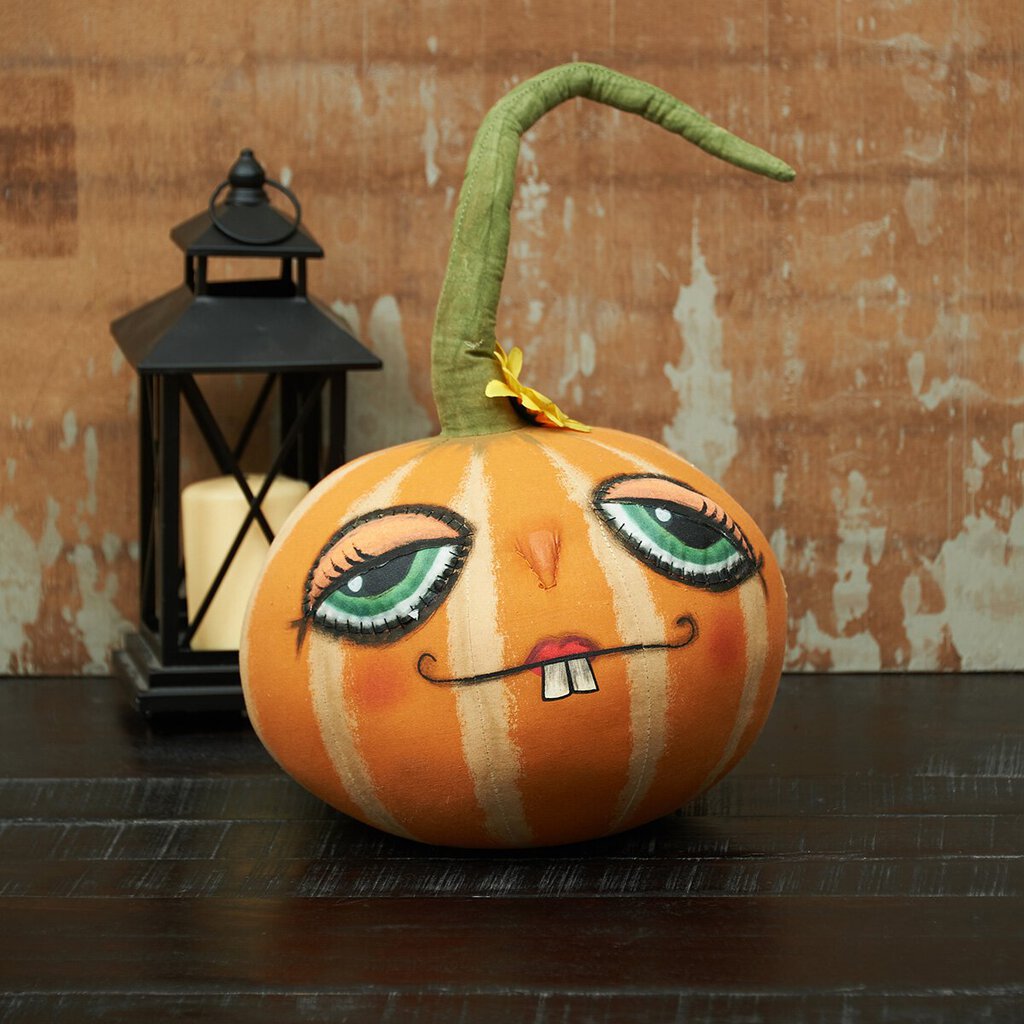 Ginger Pumpkin Head Jack-O'-Lantern Harvest Folk Art Doll