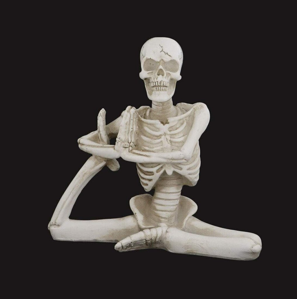 3 sitting skeletons doing different Yoga styled poses available. Each sold separately. Perfect addition for any tabletop decor! Place together or separate to add a piece of fun everywhere! Made out of Resin, Natural Color.