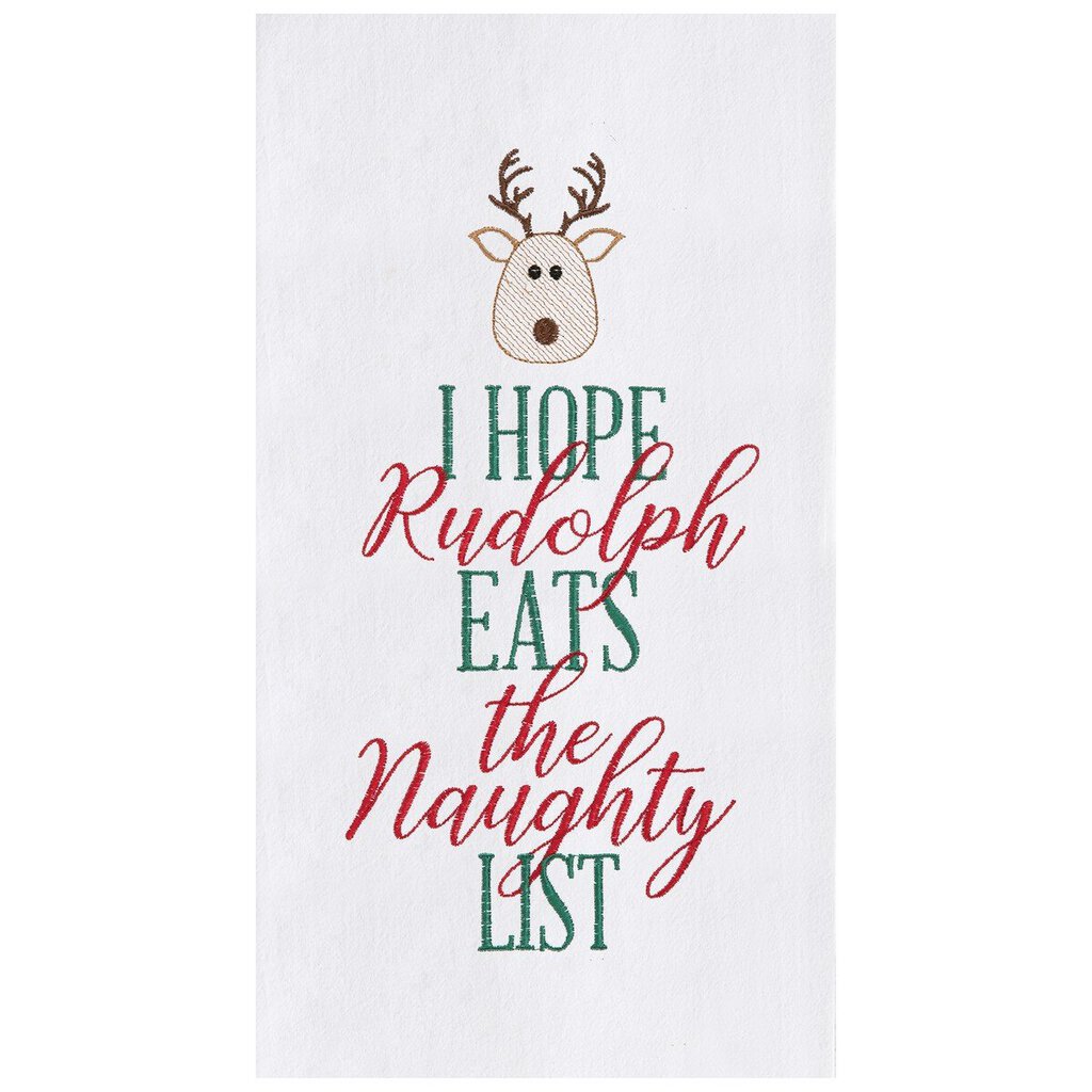 Add a little humor to your Christmas this year with this decorative flour sack towel that reads: I Hope Rudolph Eats the Naughty List. Pair this cute cotton kitchen towel with other humorous accents for a casual holiday look, or with milk and cookies to ensure your days are merry and bright all season long.