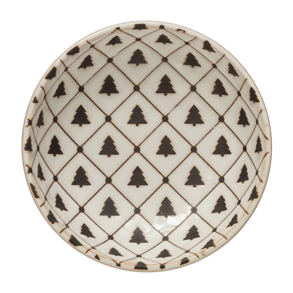Stoneware Dish with Tree Pattern, 3 1/2"