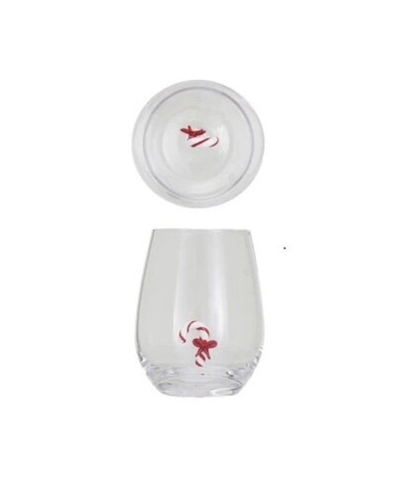 Stoneware Santa Salt & Pepper w/ Acacia Wood Tray