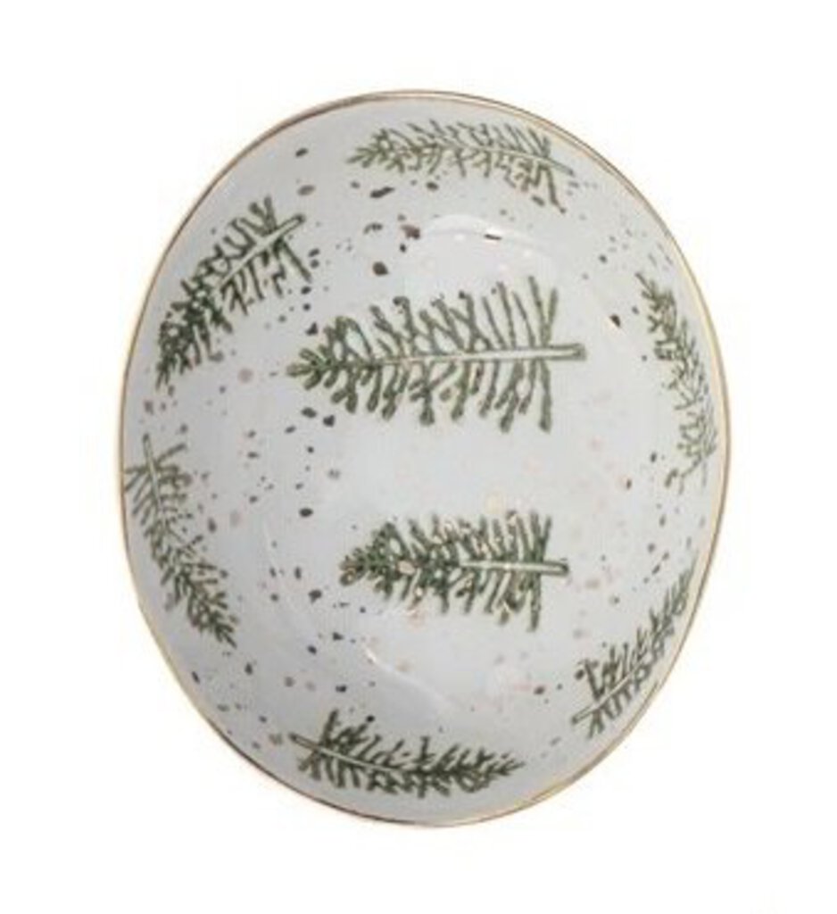 Hand-Painted Evergreen Stoneware Dish, Style 3 Branches