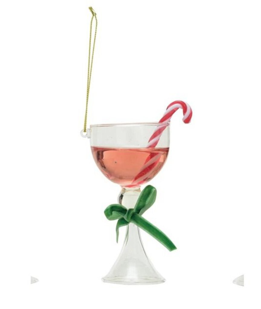 Pink Candy Cane Cocktail Ornament w/ Glitter