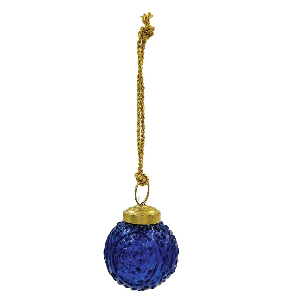 Dark Blue 2" Embossed Mercury Glass Ball Ornament