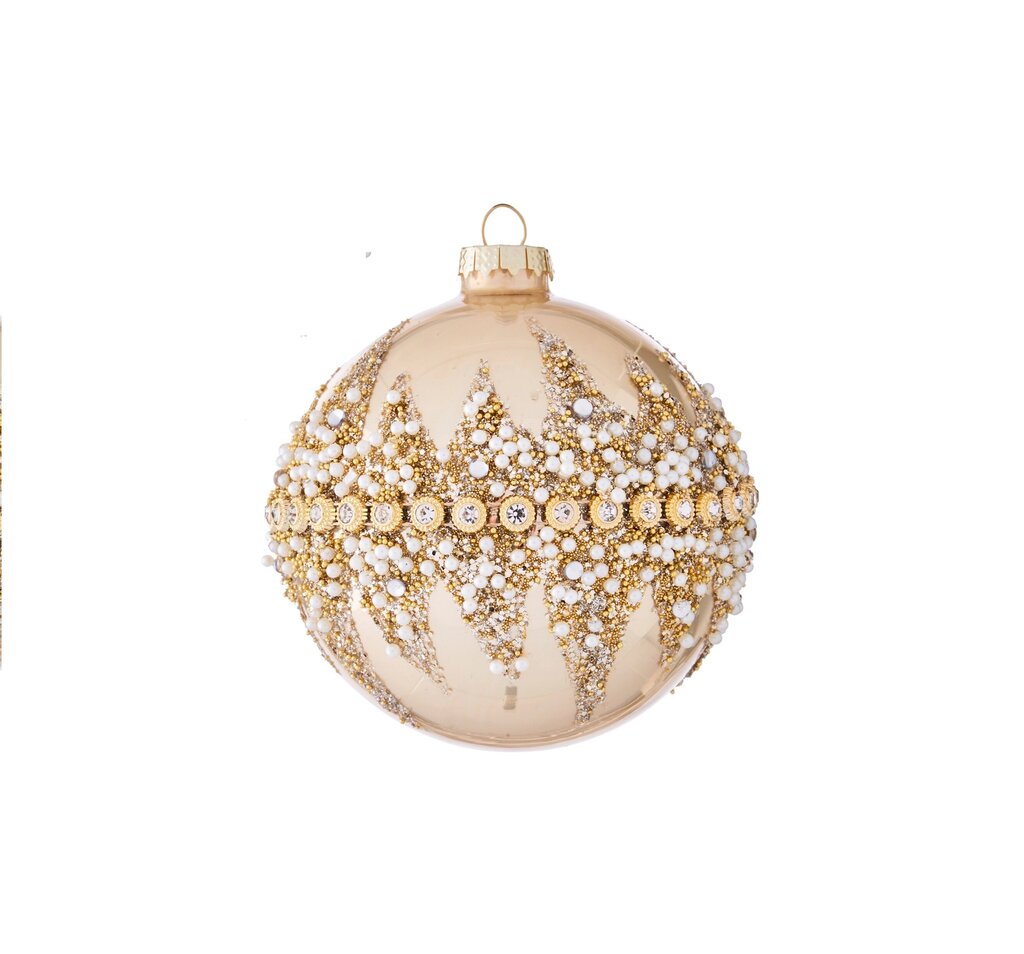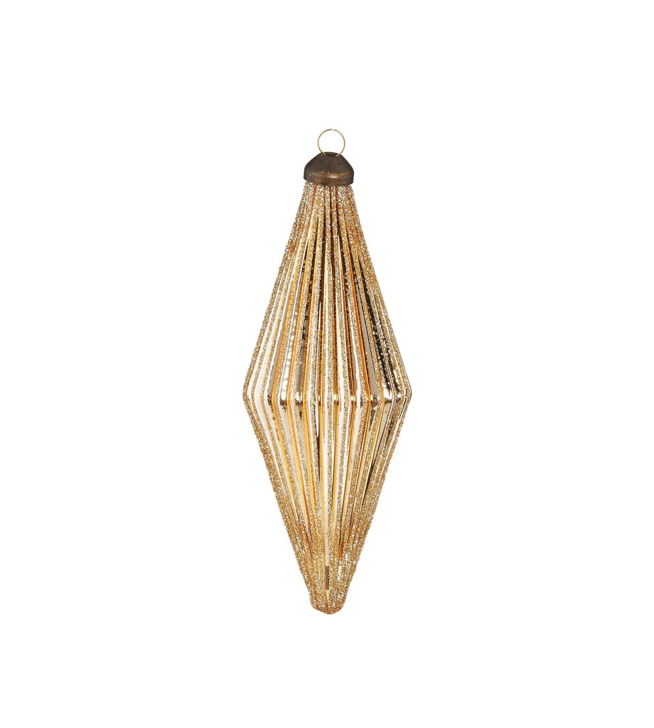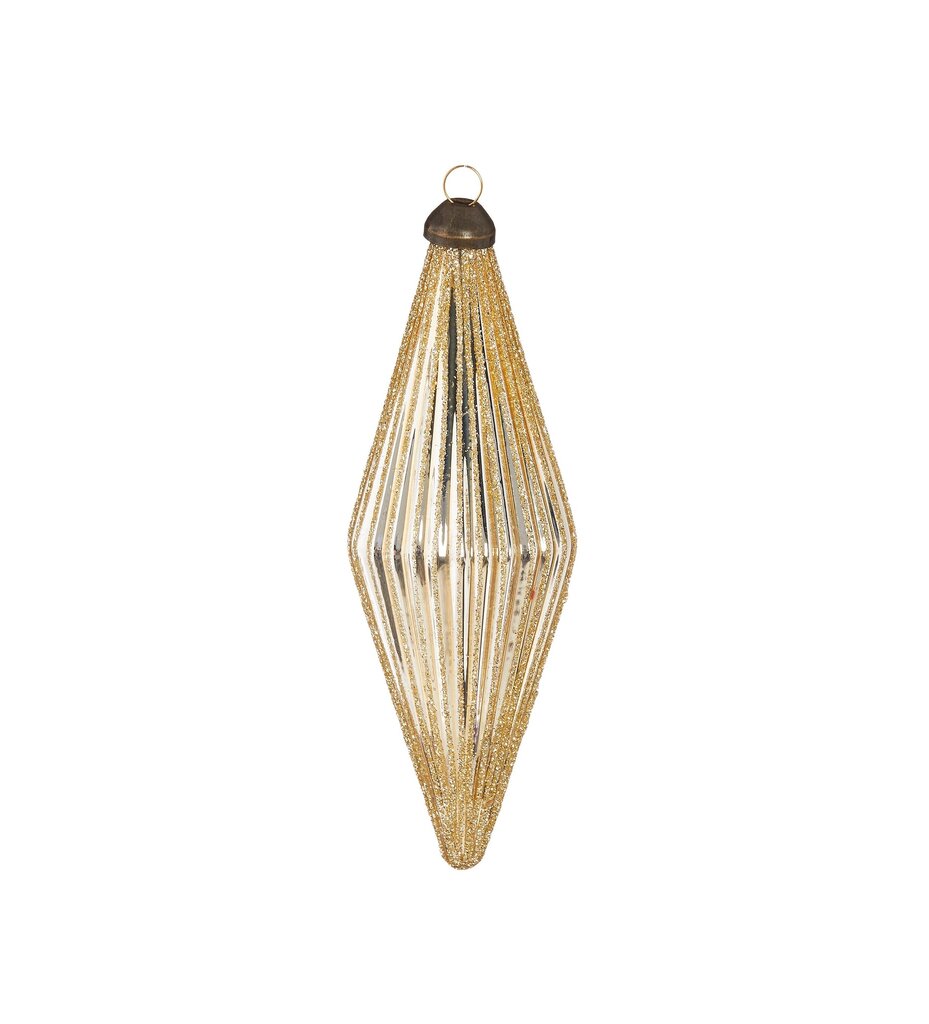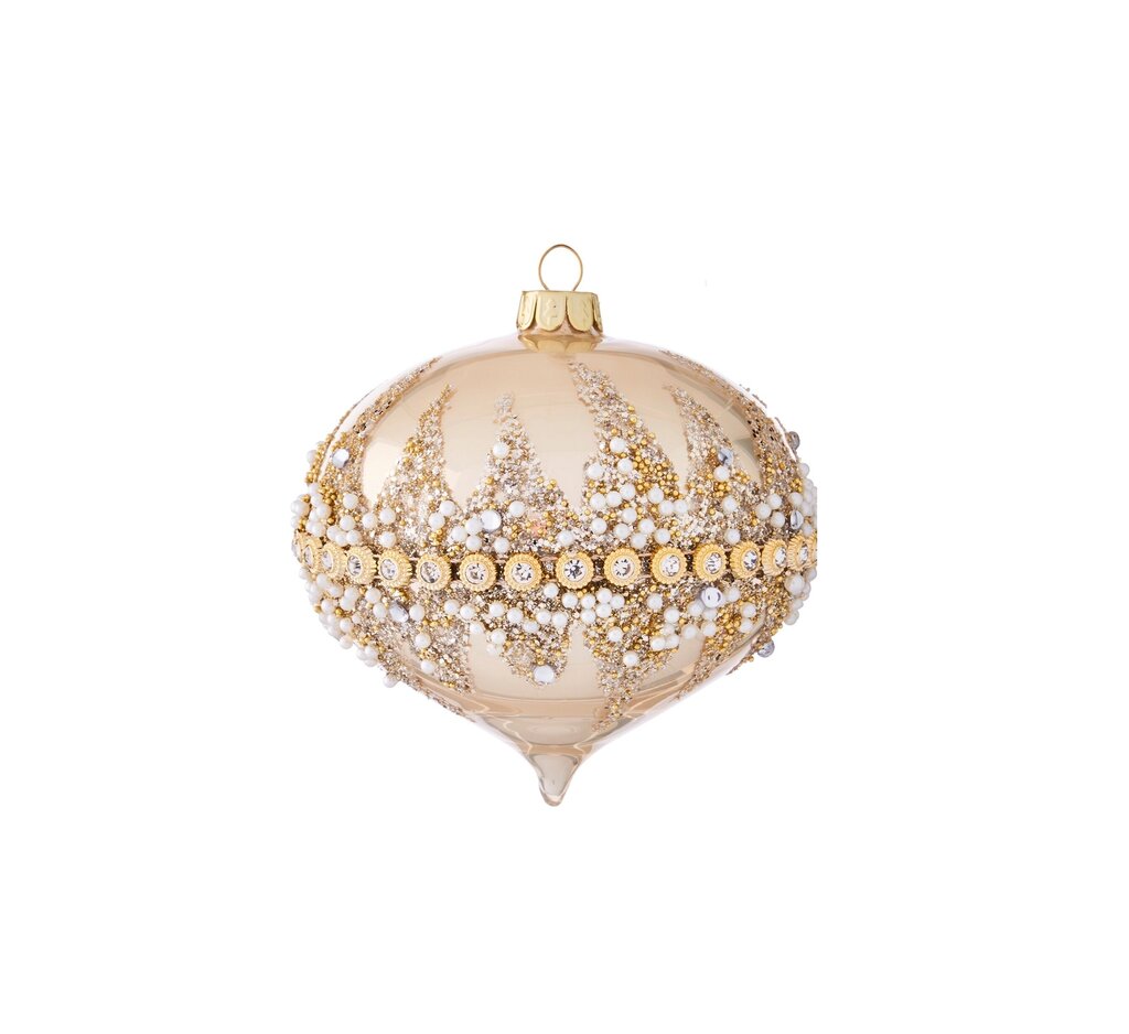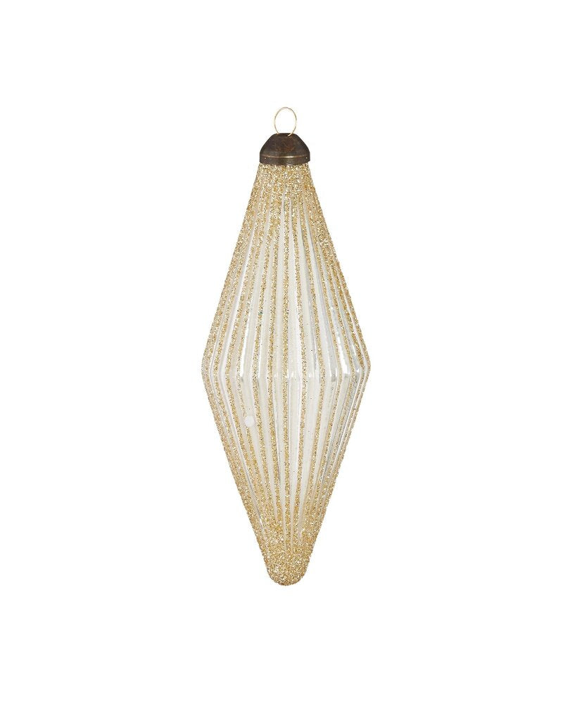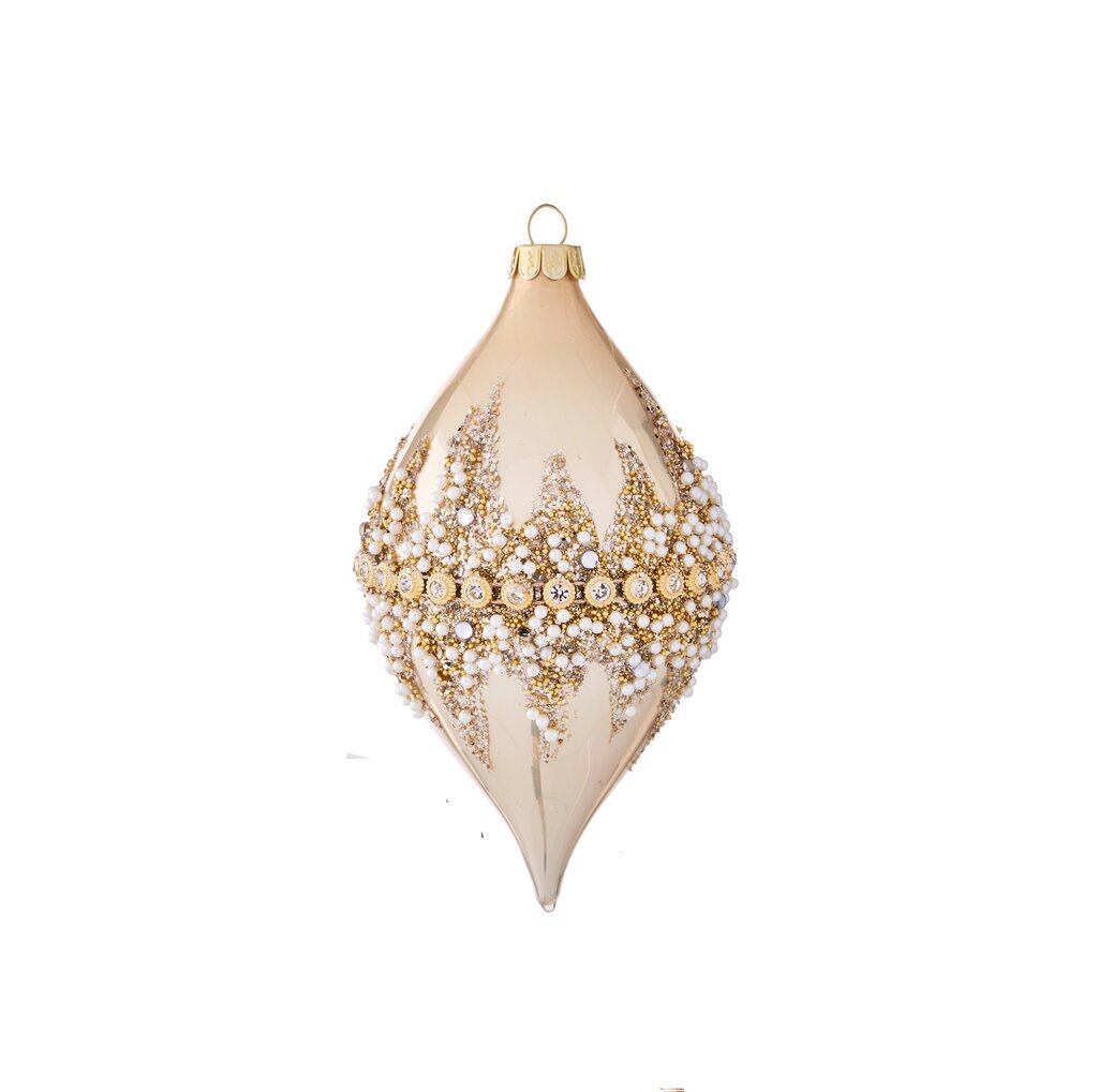 Beaded Gold Glass Ornament, 4" Tear Drop