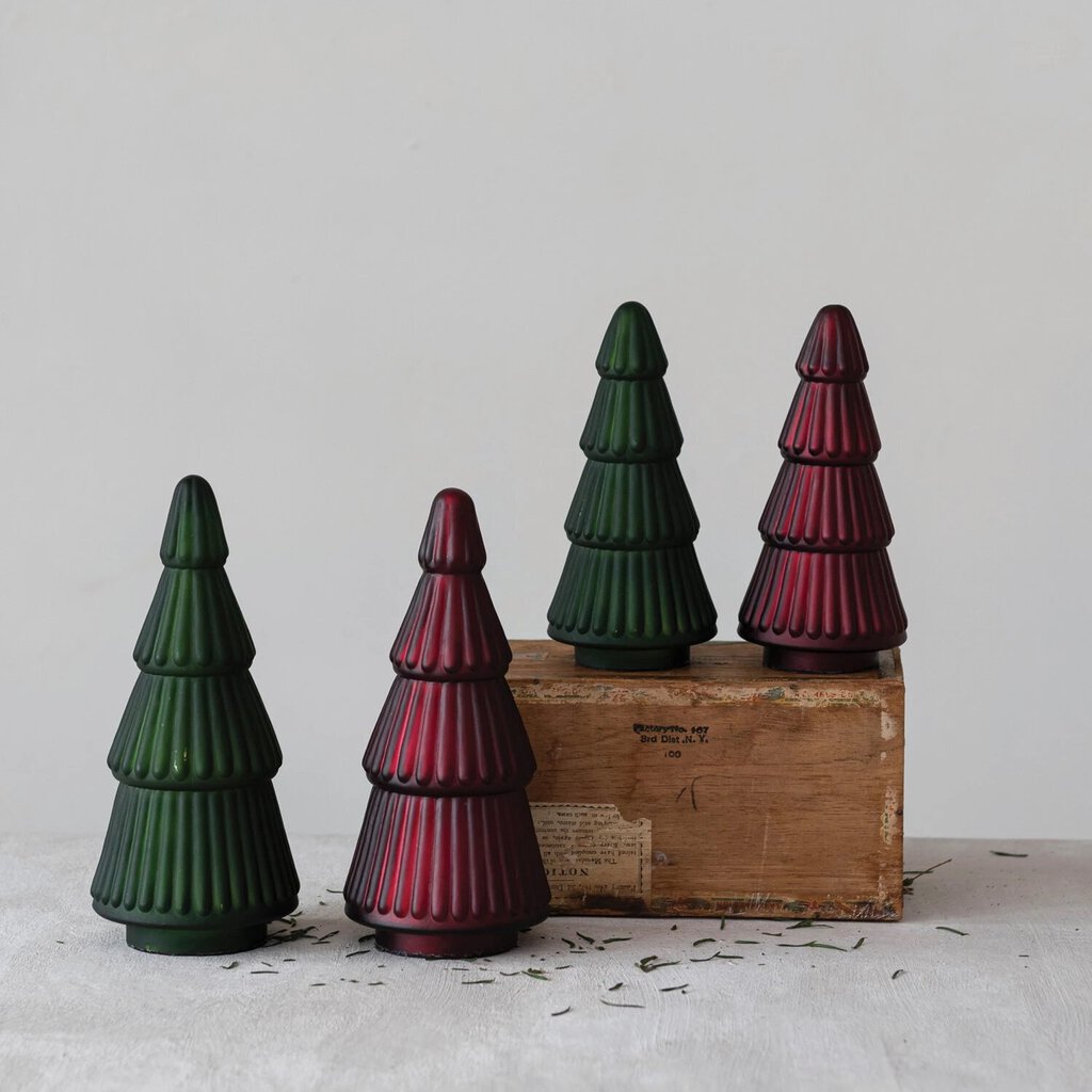 Embossed Mercury Glass Tree 9 1/2", Matte Burgundy