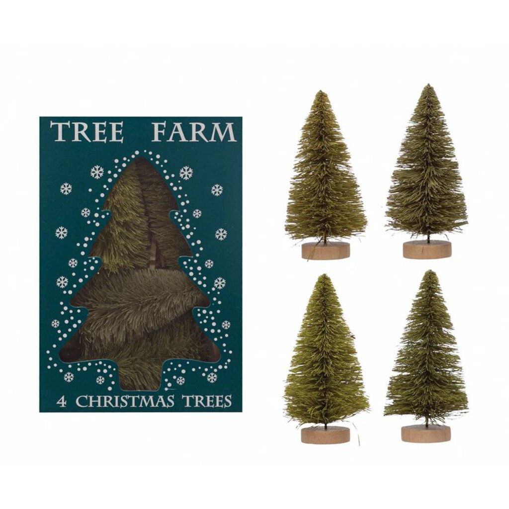 2-1/4" Round x 4-1/4"H Sisal Bottle Brush Trees with Wood Base, Green, Boxed Set of 4