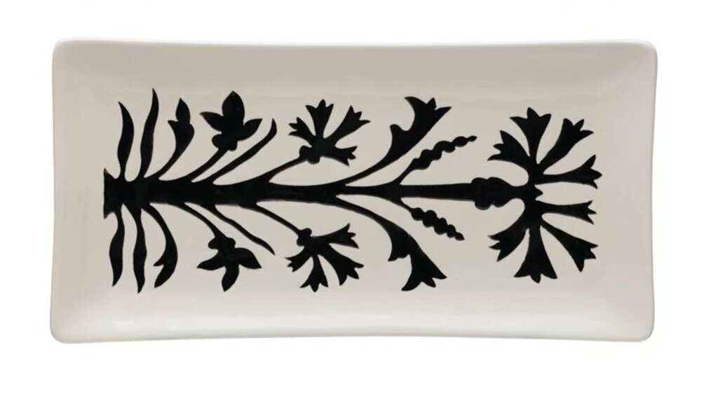 Stoneware Platter with Flower S2