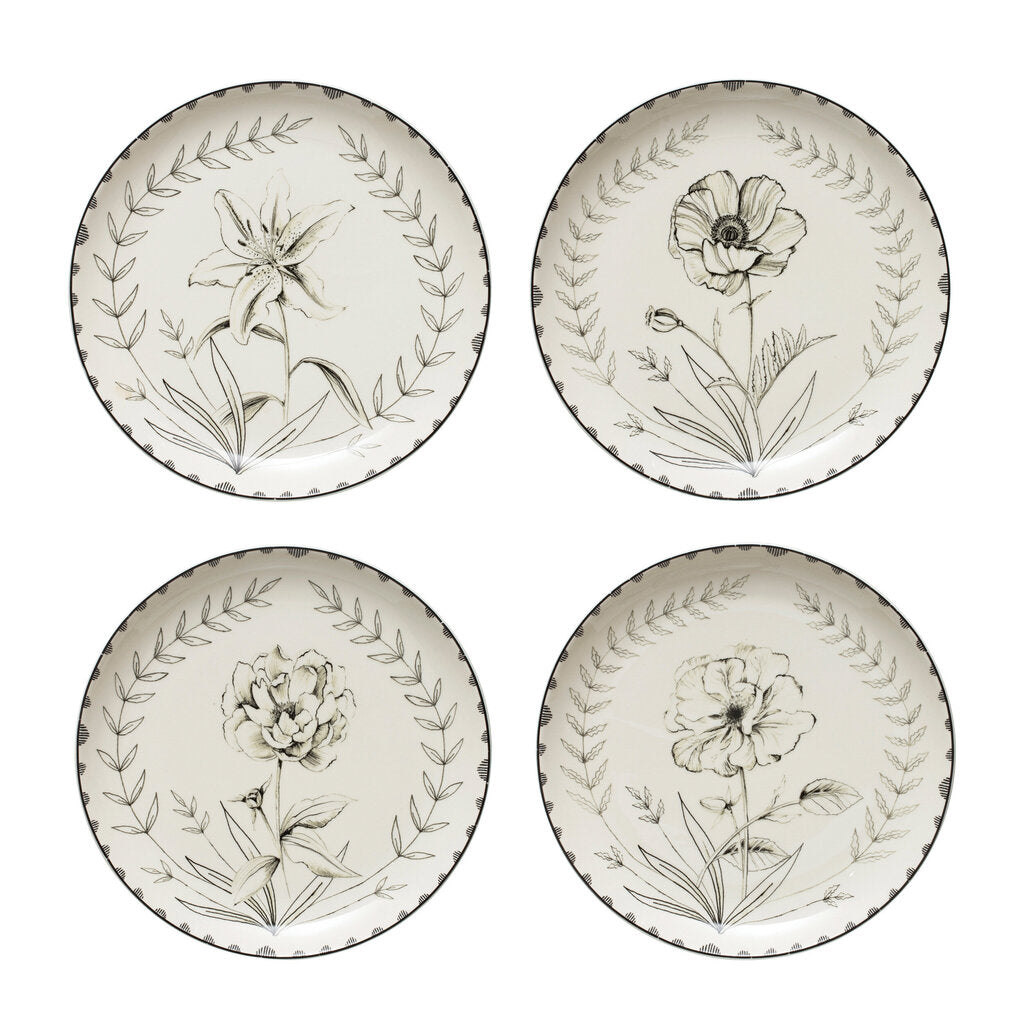Stoneware Floral Plate, 8"