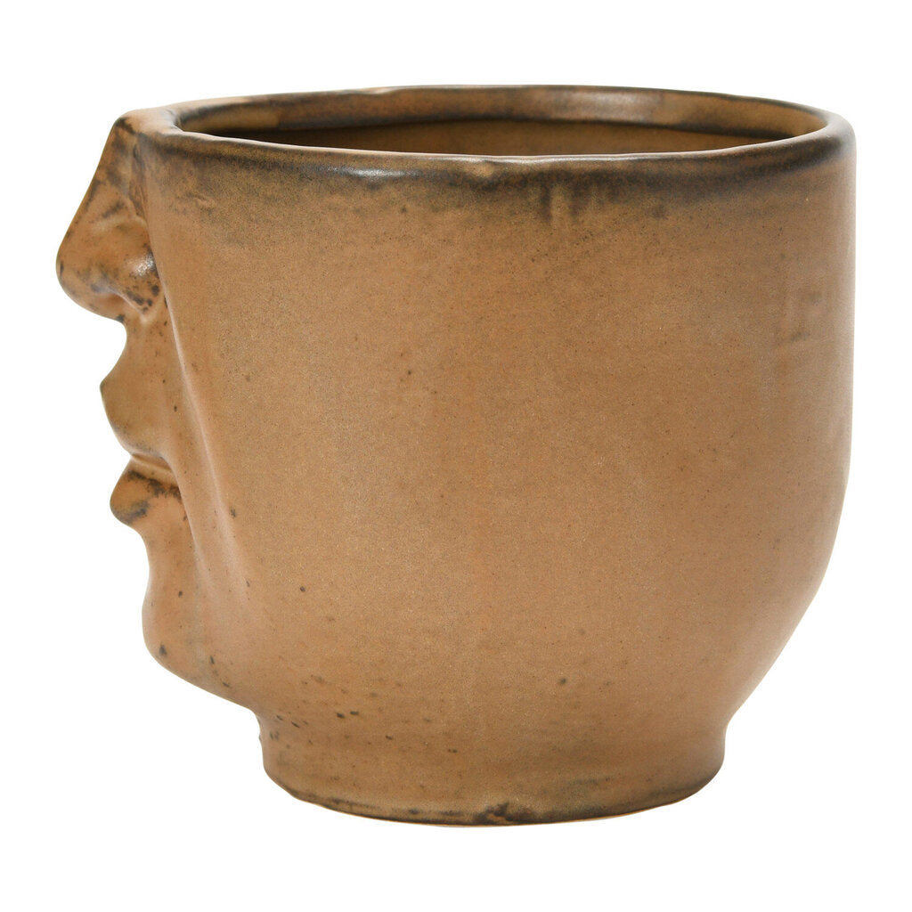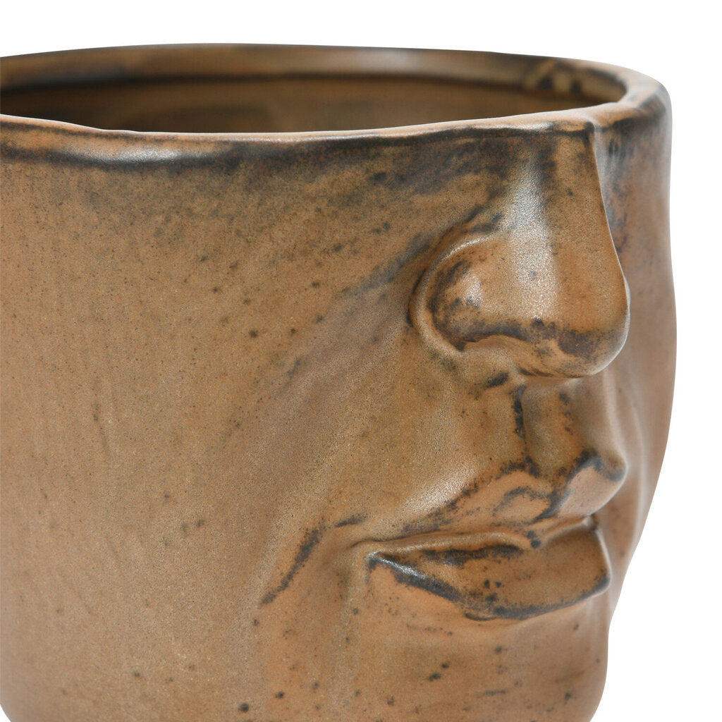 Stoneware Planter with Face, Matte Brown