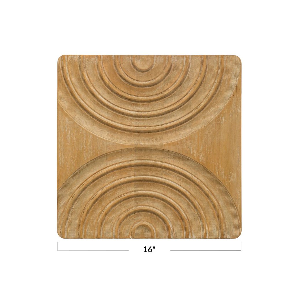 16" Square Carved Pine Wood Wall Décor w/ Arches, Natural