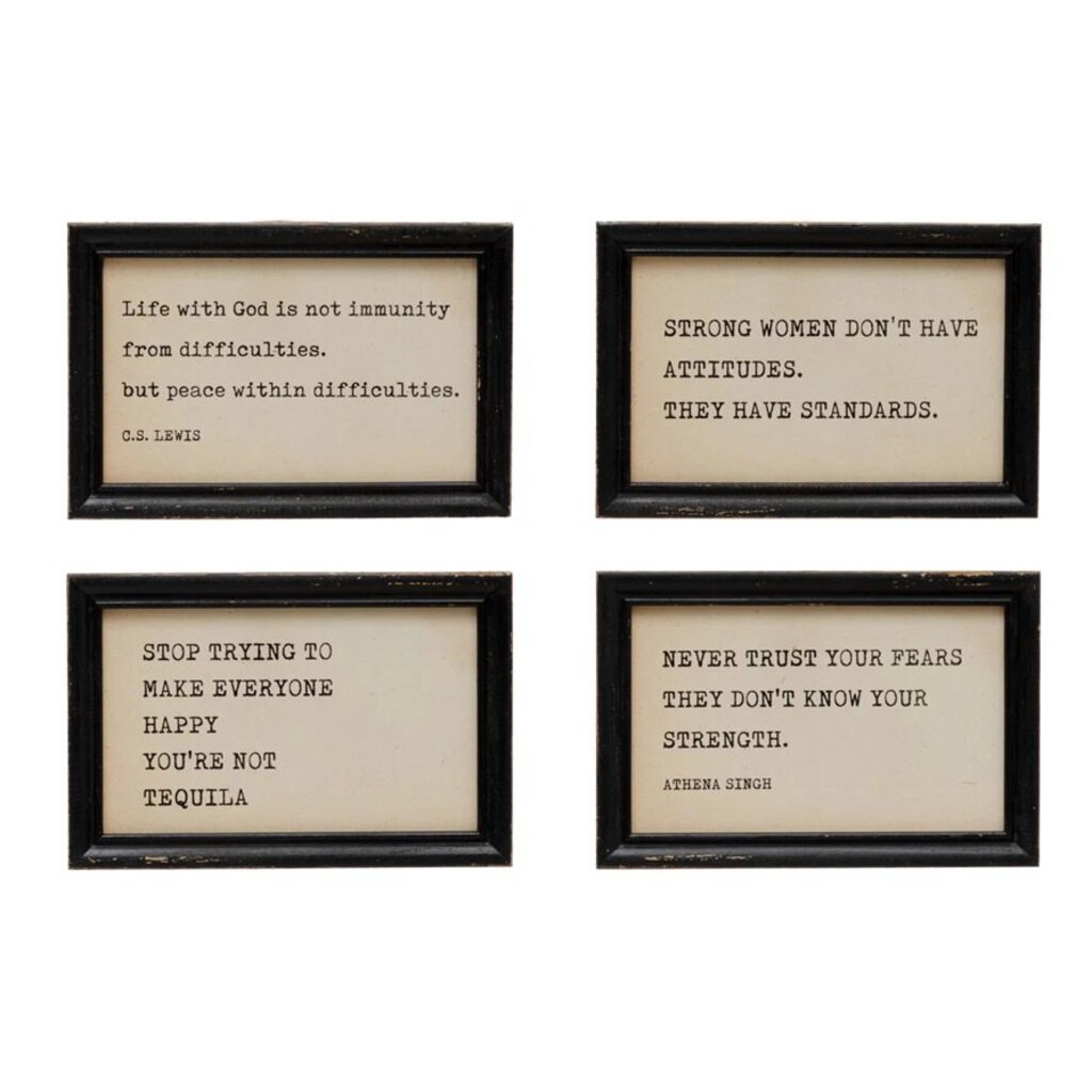 9"W x 6"H Wood Framed Wall Décor w/ Saying, Black & White