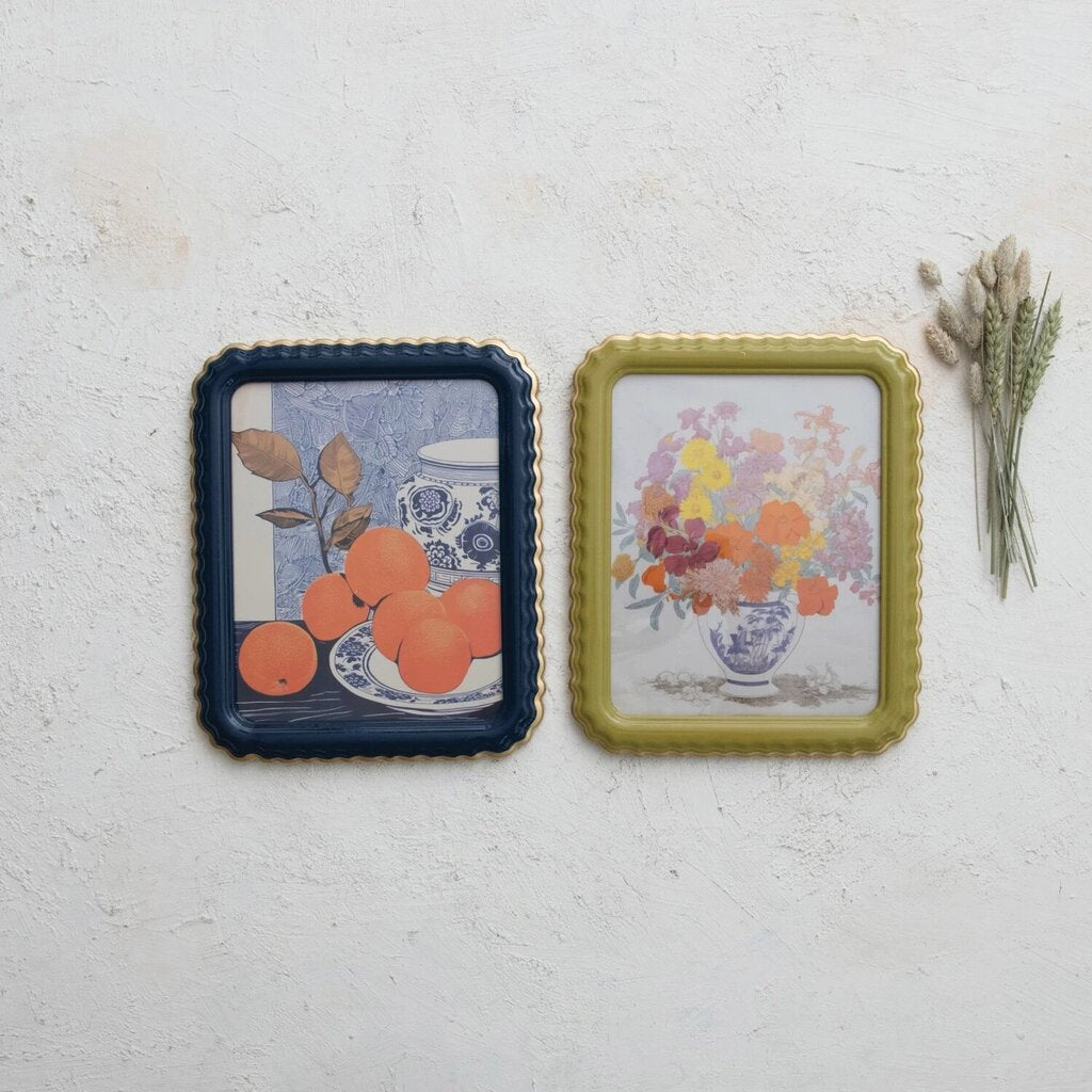 10"W x 12"H MDF Framed Scalloped Photo Frame w/ Gold Finish Edge, 2 Colors (Holds 8" x 10" Photo) (Hangs or Sits)